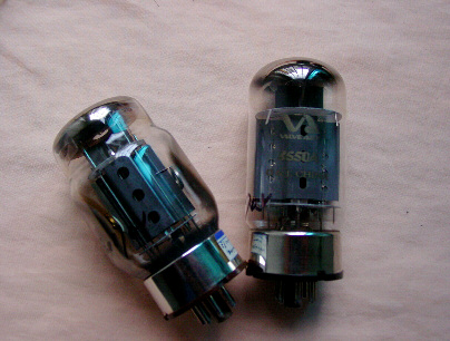 几种在音频放大器里常用的电子管图示四: 两种管型的中功率功率放大管:6550